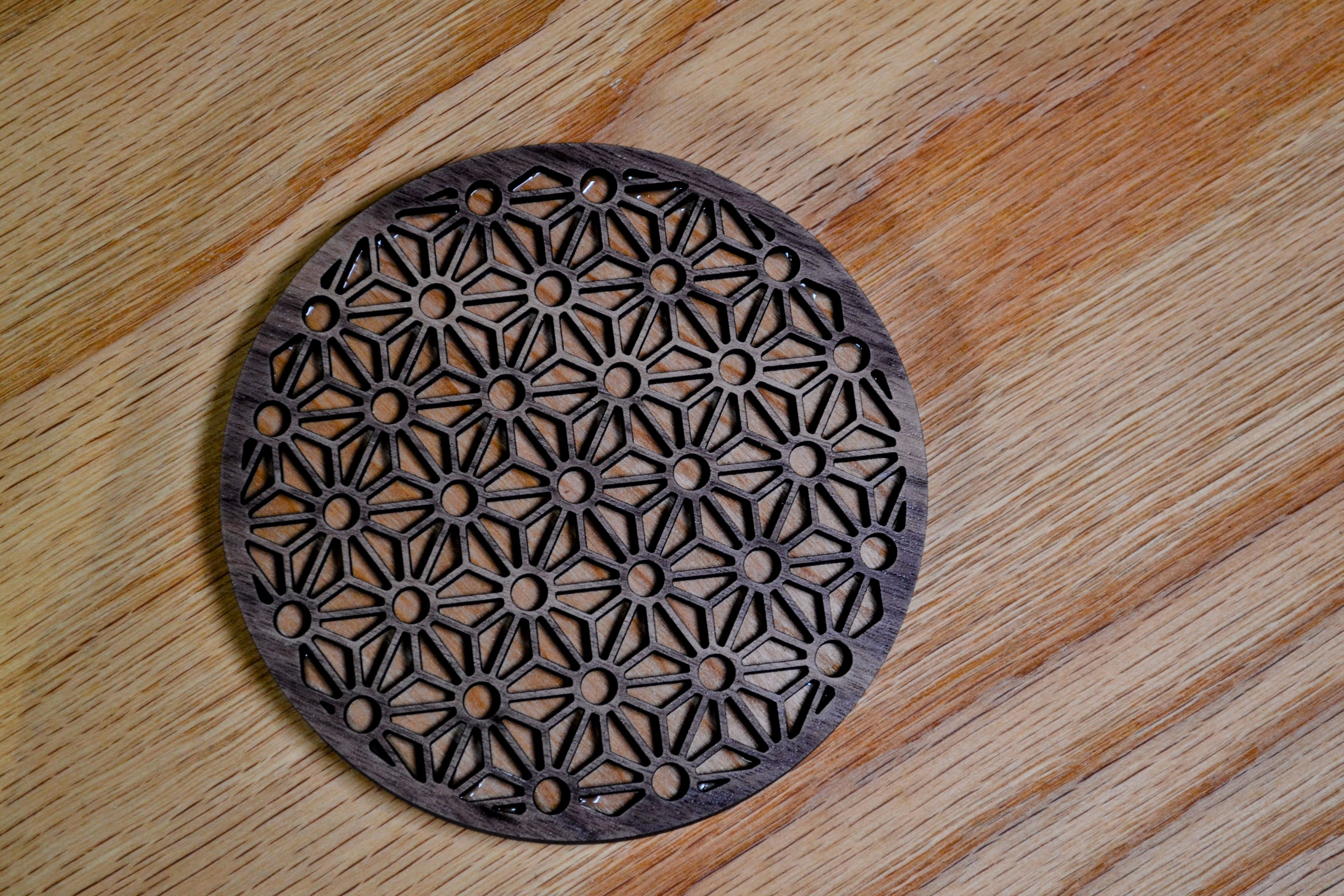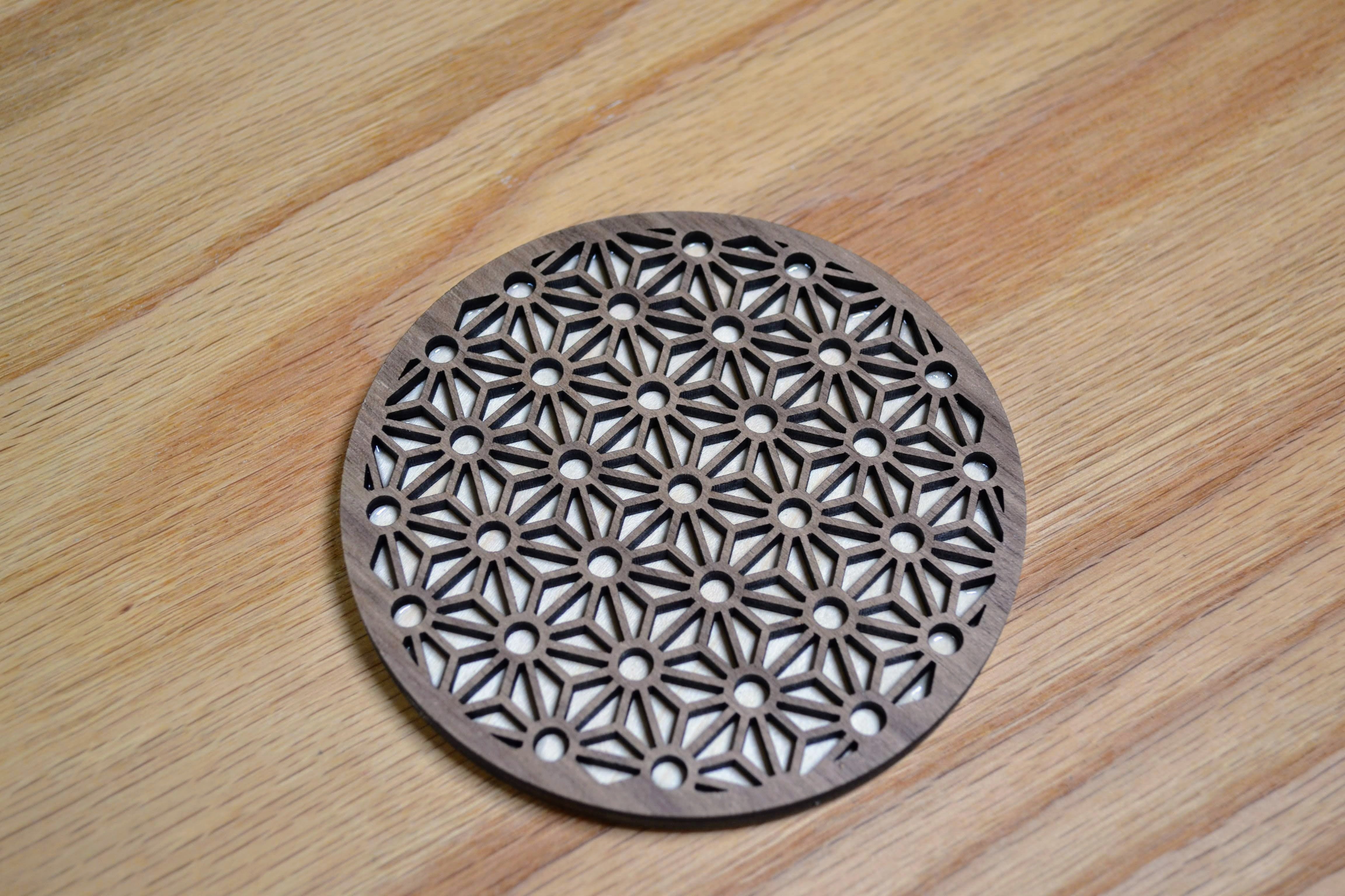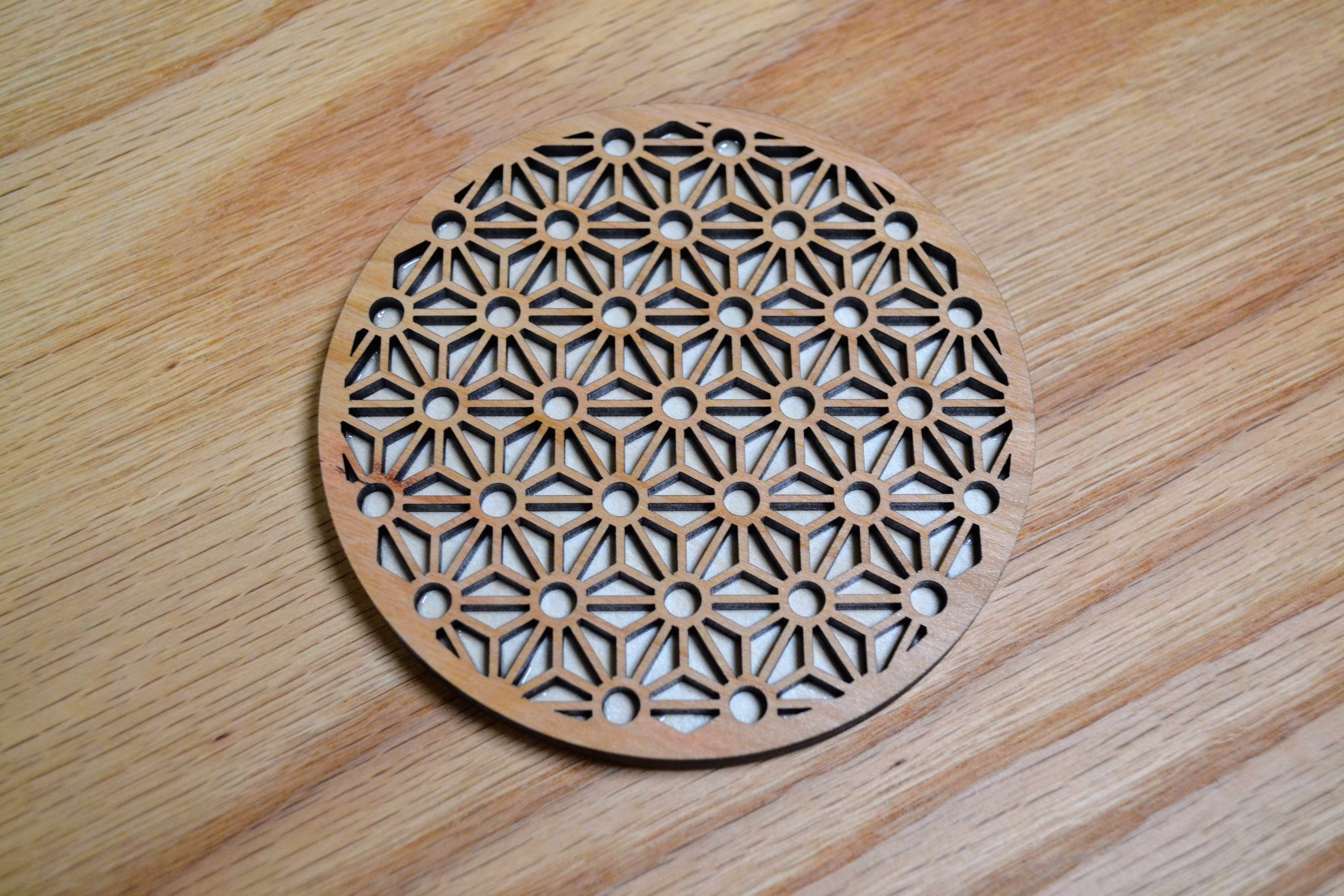 Kumiko is a Japanese style of woodworking which uses intricate interlocking joinery to create complex geometric designs and construction. These gorgeous coasters feature a Kumiko inspired pattern that will look great on any table.