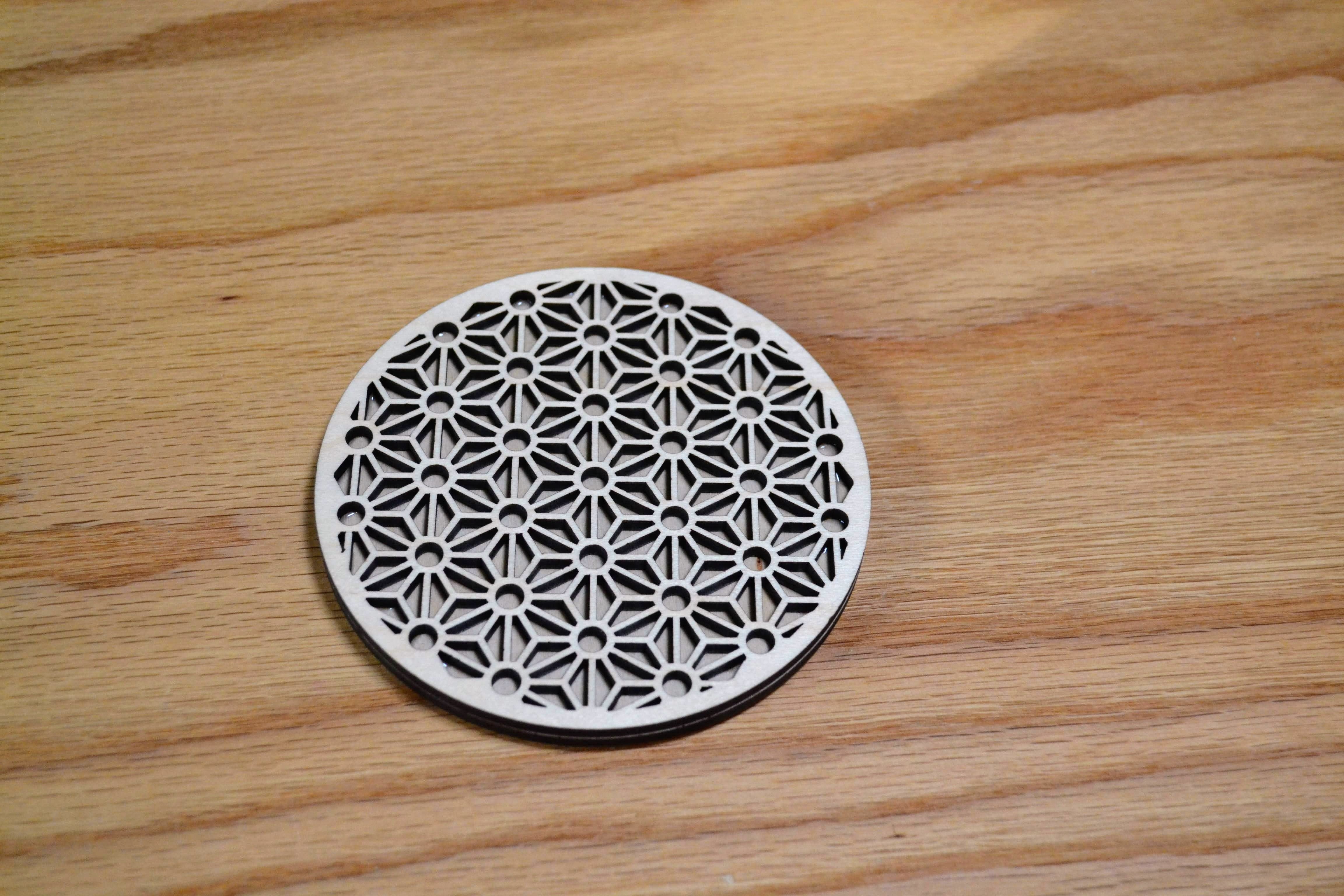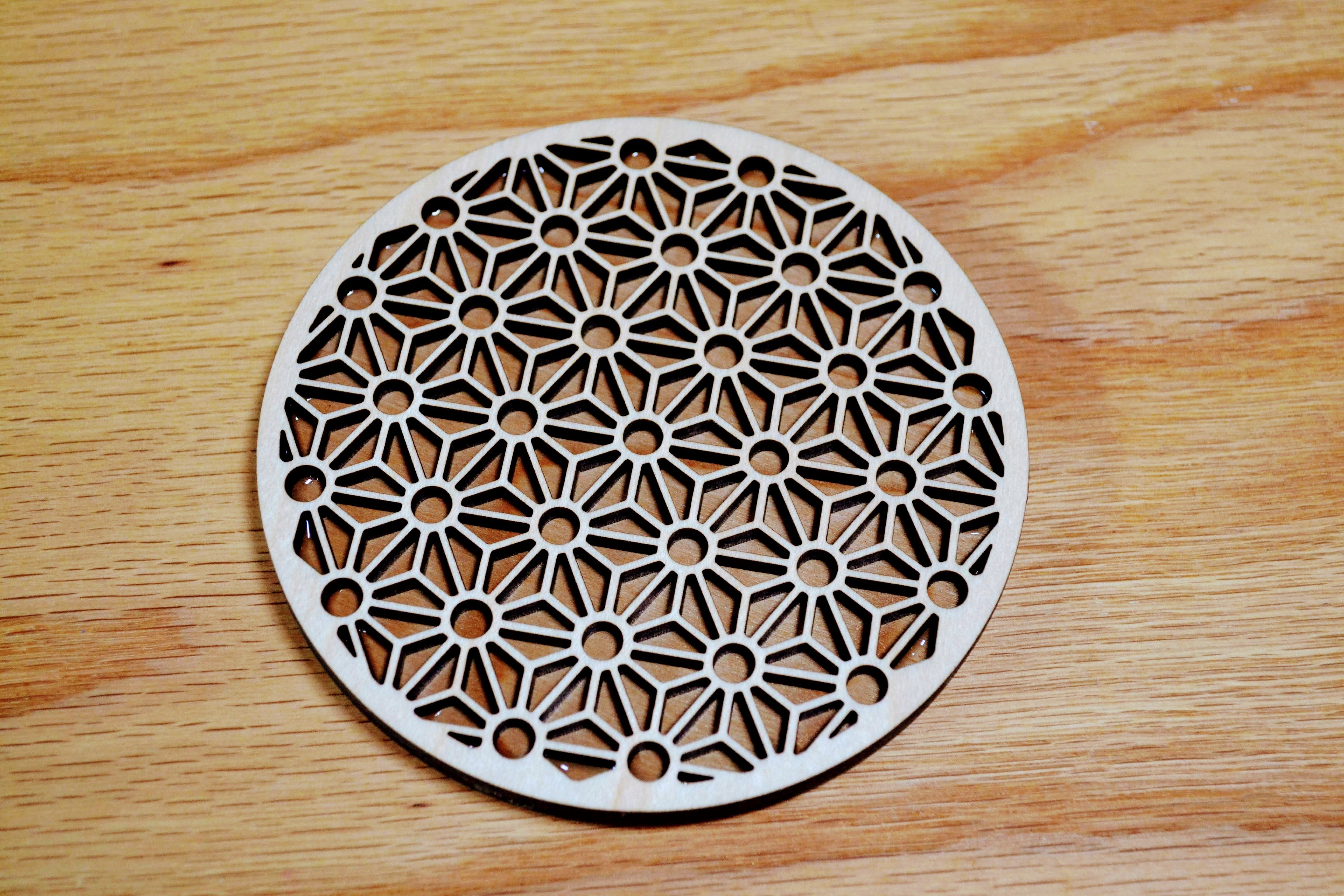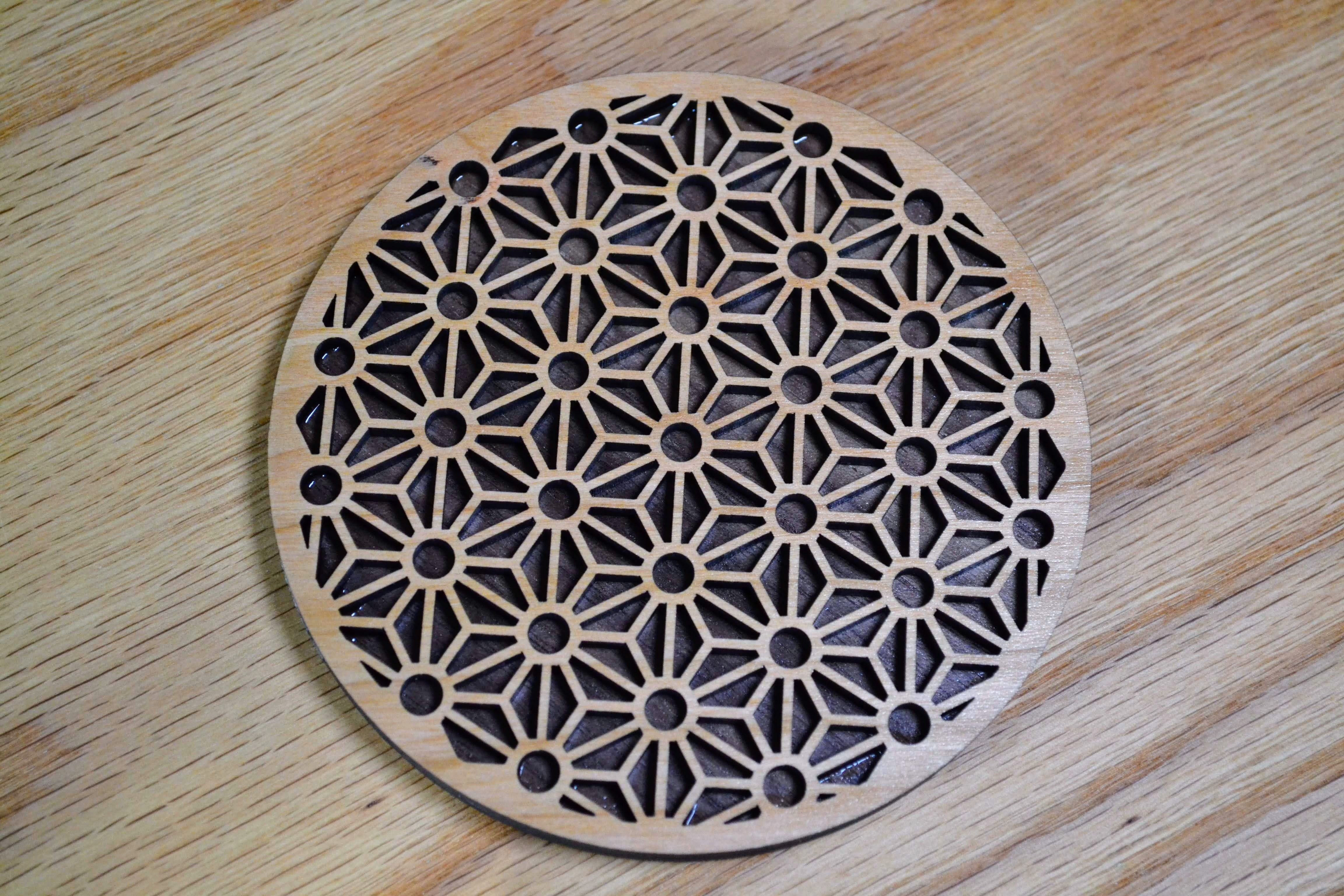 Kumiko is a Japanese style of woodworking which uses intricate interlocking joinery to create complex geometric designs and construction. These gorgeous coasters feature a Kumiko inspired pattern that will look great on any table.