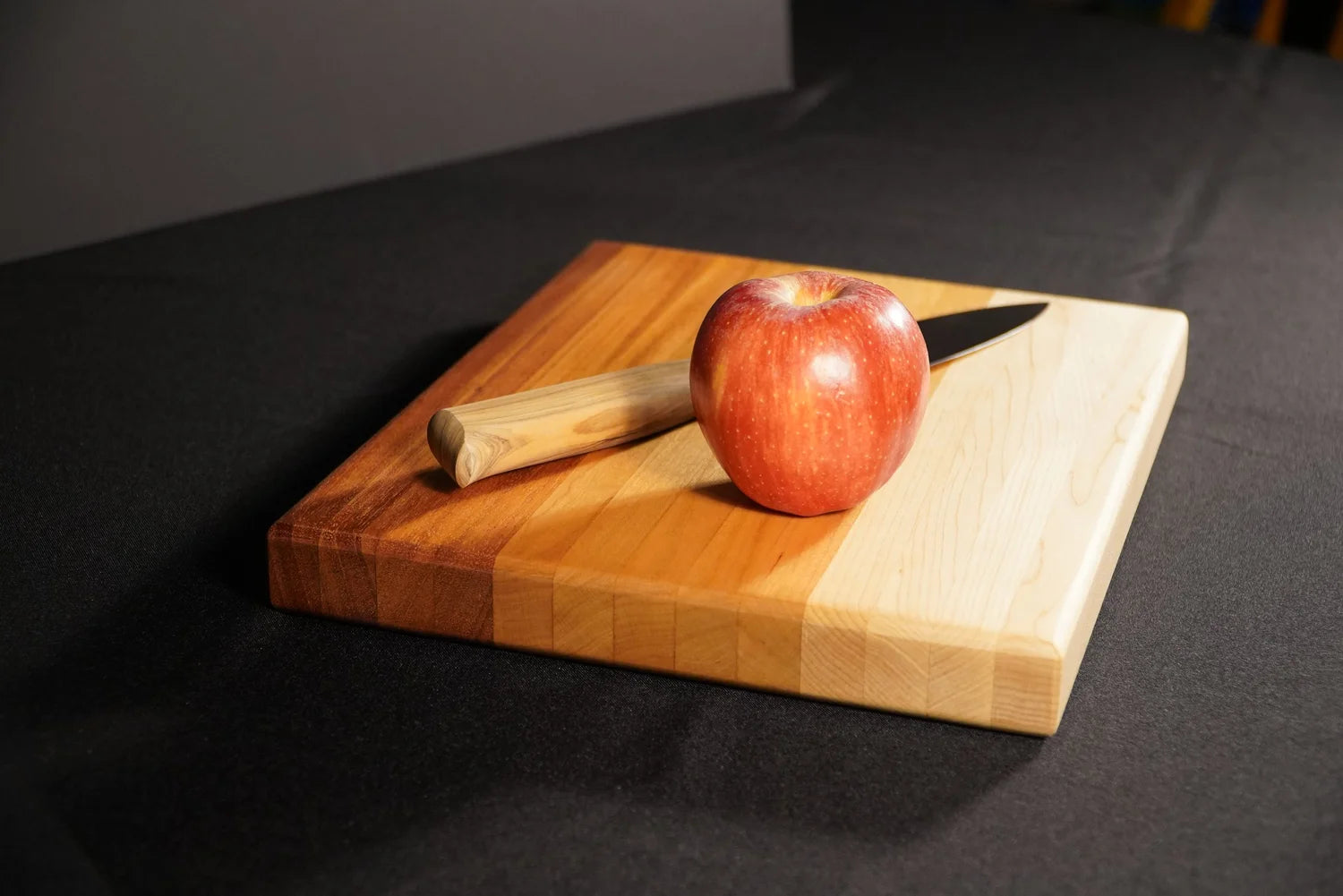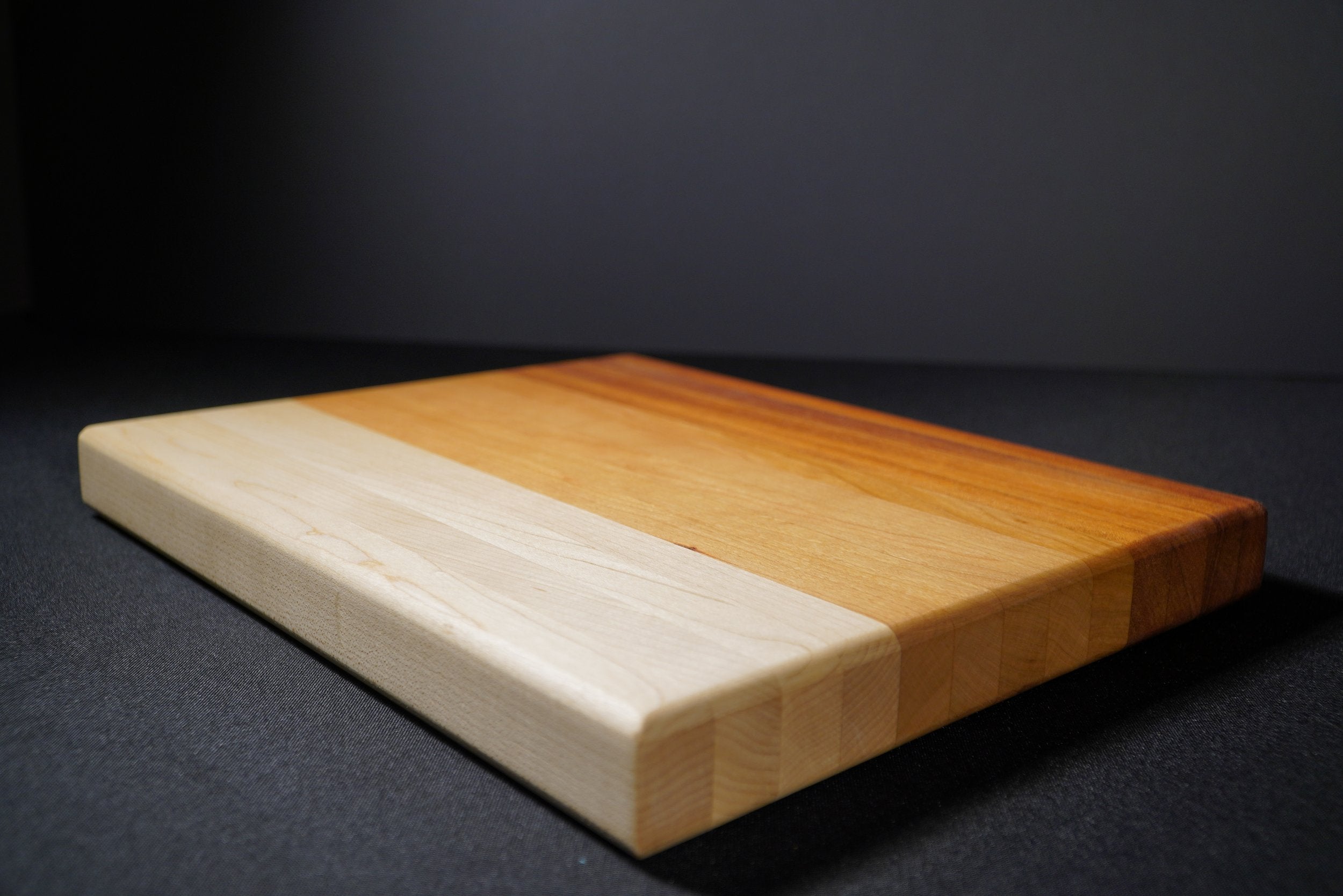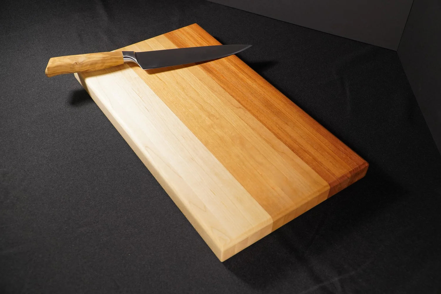 Handcrafted to highlight nature's subtle tones. The Ombre Board flows from warm african mohagony through beautiful cherry to timeless maple, hand made and finished for daily kitchen use, charcuterie or serving.