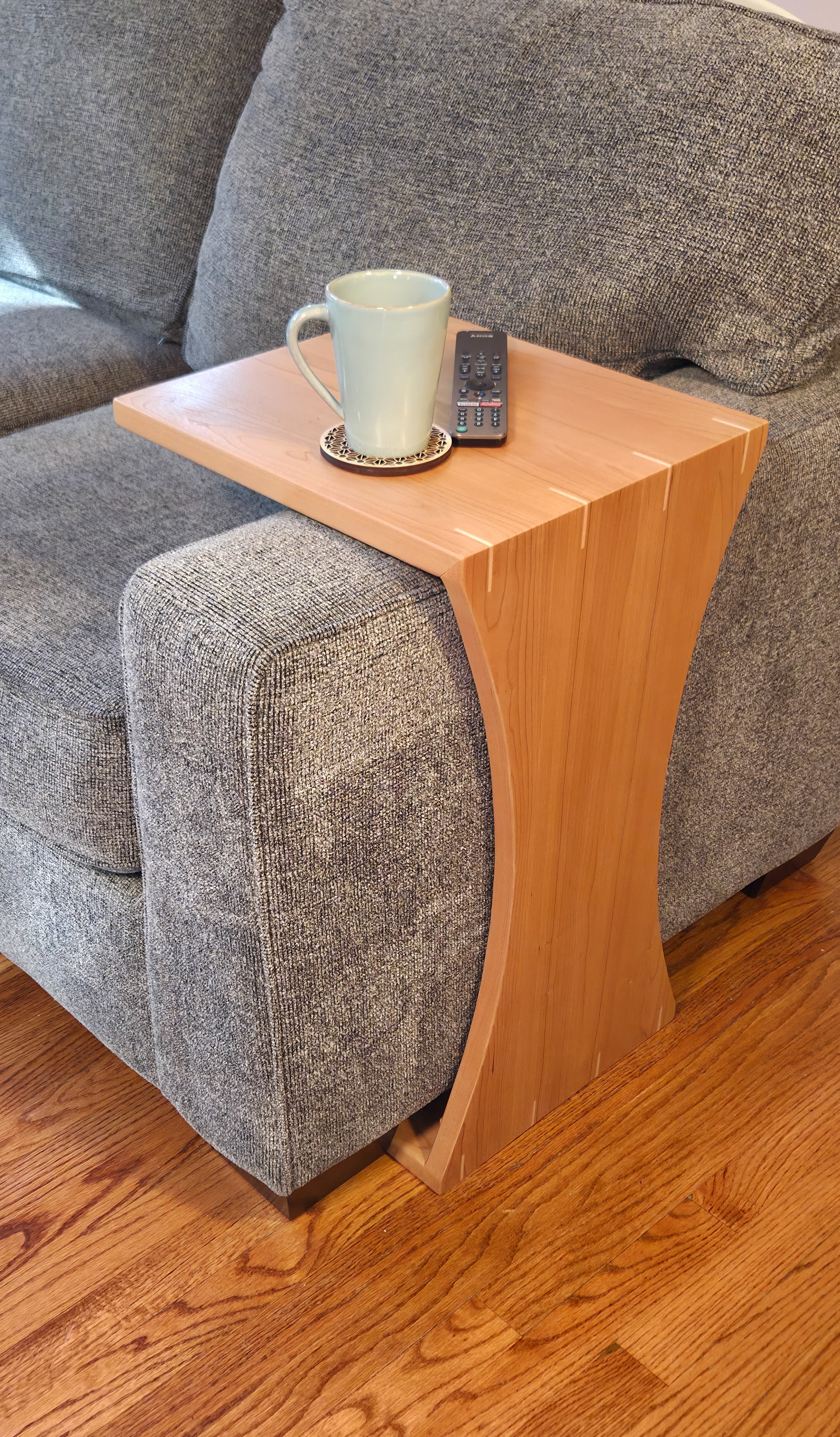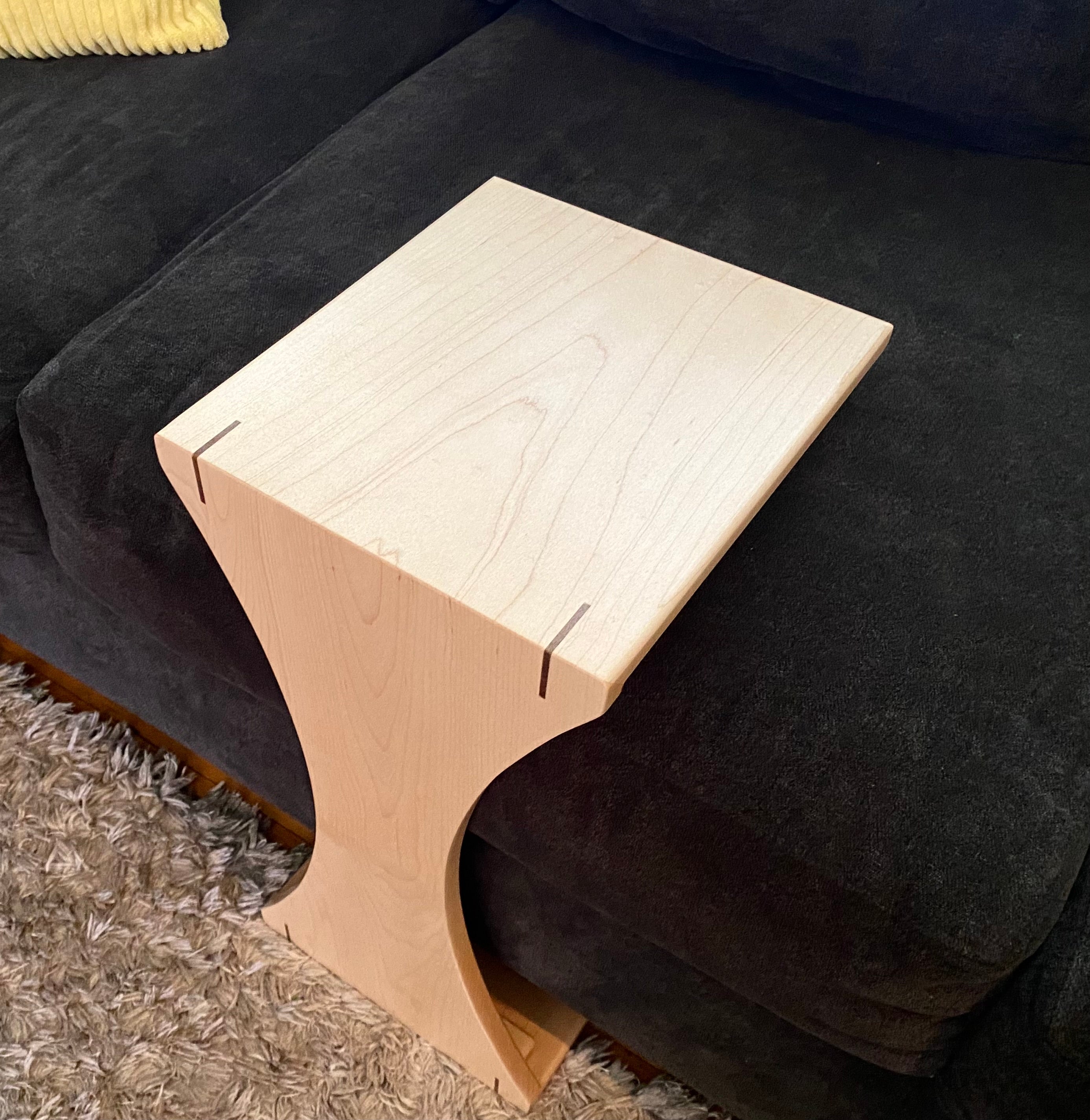 The Sofa C-Table is designed to fit over the cushion or arm of your furniture.